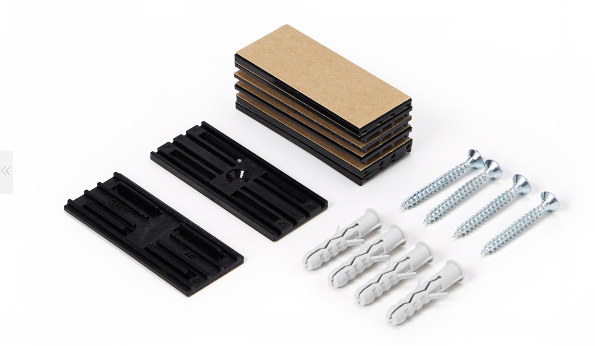 Système de fixation adhésif double-face ultra-résistant doté d’un design à encastrement qui permet de fixer et de détacher facilement les panneaux du mur.Dans le cas de surfaces non lisses et pour une tenue maximale, des vis et des chevilles sont incluses dans le kit de fixation.